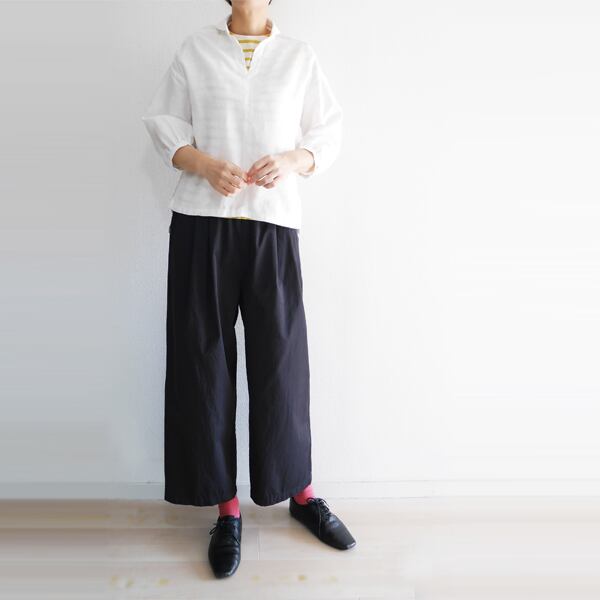 コットン×リネンサマービエラ スキッパーラウンドカラープルオーバー 2517896 日本製 SORTE ソルテ | メイドインジャパンの天然素材レディースブランド sorte web shopping BASE店
