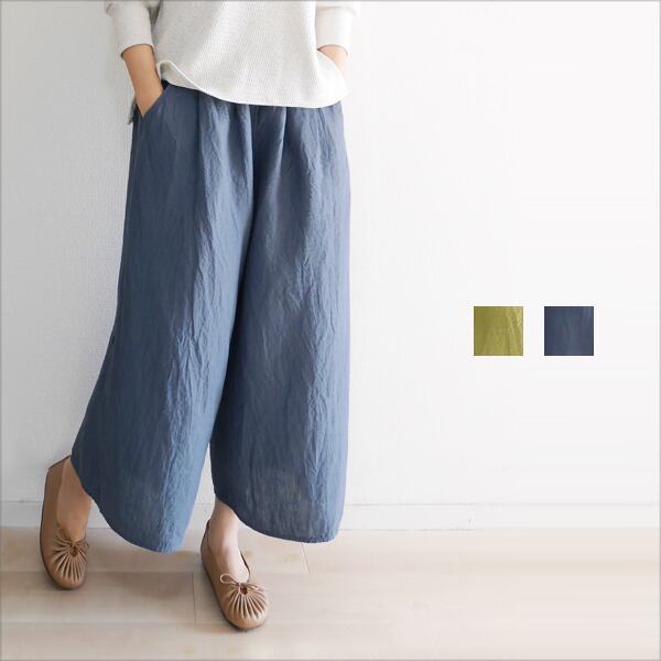 先染めリネンヘンプキャンバスワッシャータックワイドパンツ 2514904 日本製 SORTE ソルテ | メイドインジャパンの天然素材レディースブランド sorte web shopping BASE店