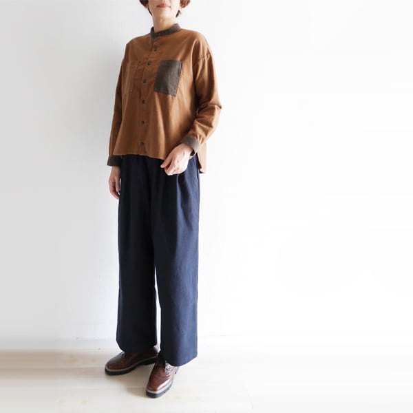 表面にふんわりとした起毛をかけた、上質なコットンフランネル素材で仕立てたやさしい肌ざわりのワイドパンツです。