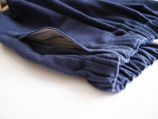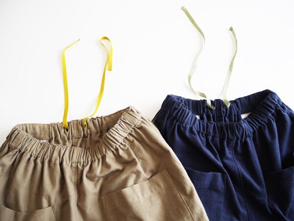 ウエストは総ゴム仕様で、中に紐を通しているので着脱が簡単でサイズの調節も可能です。