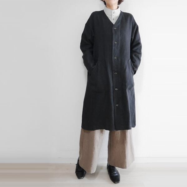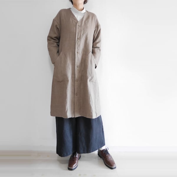Item :フレンチリネンブラッシュツイルVネックロングコート