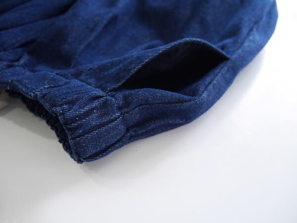 ウエストは総ゴム仕様で、中に紐を通しているので着脱が簡単でサイズの調節も可能です。