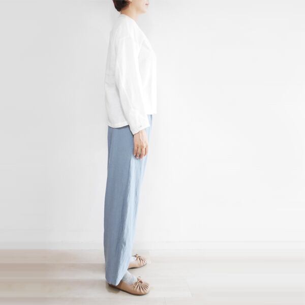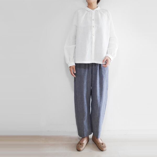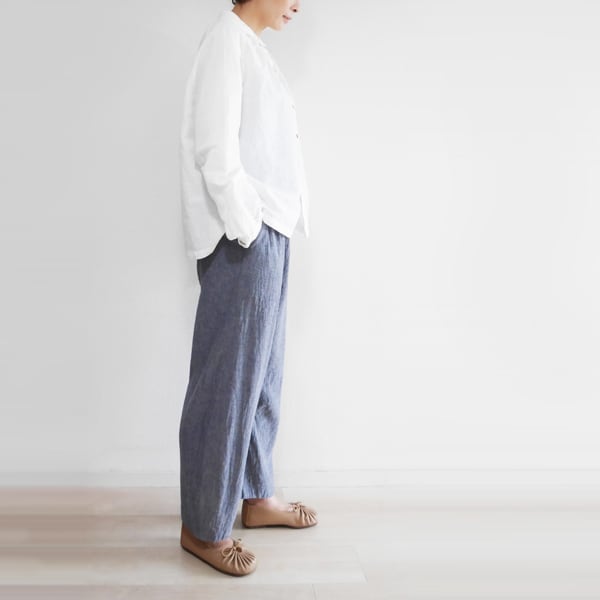 Item : リネン×コットン先染めシャンブレーテーパードカーブパンツ