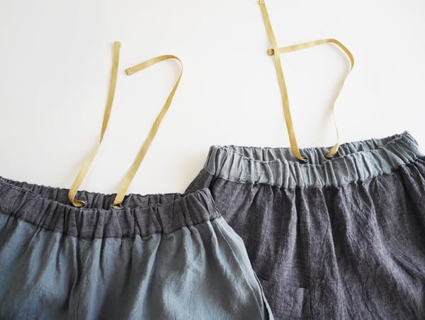 ウエスト布と裾裏は配色仕様で、さりげないポイントです。
