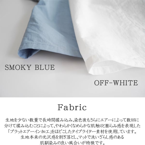 高密度に織り上げたコットンタイプライター素材を使用した、軽やかでハリのある一枚。