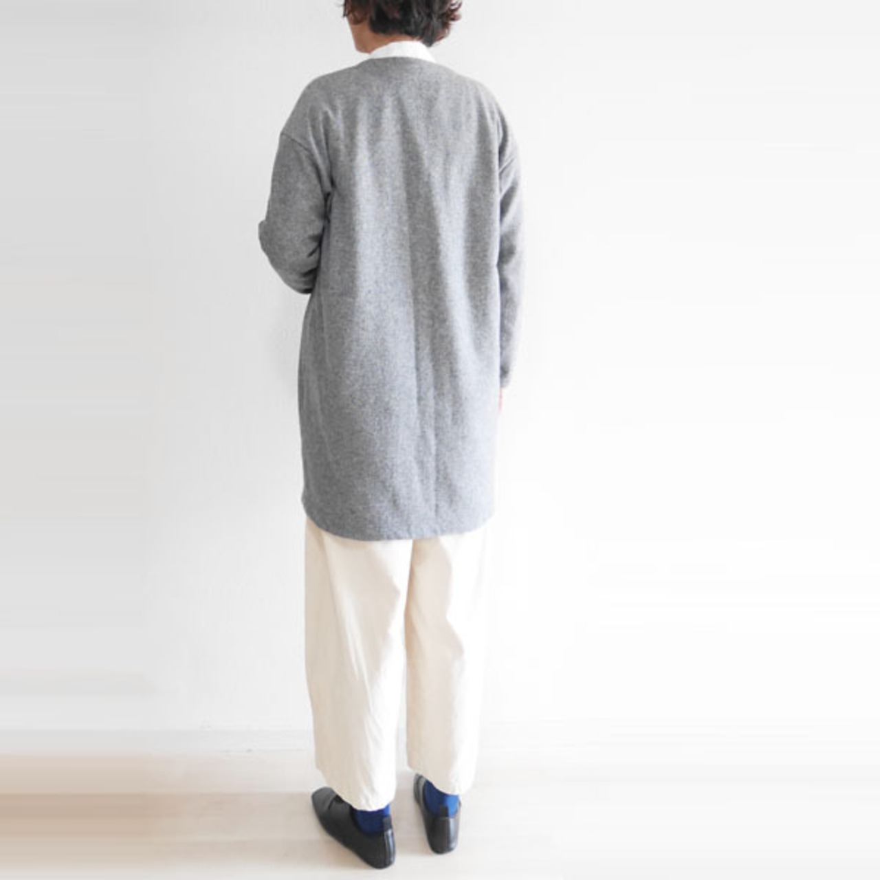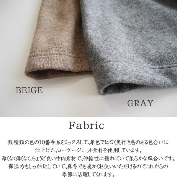 数種類の色の10番手糸をミックスして、単色ではなく奥行き感のある色合いに仕上げた、ローゲージニット素材を使用しています。