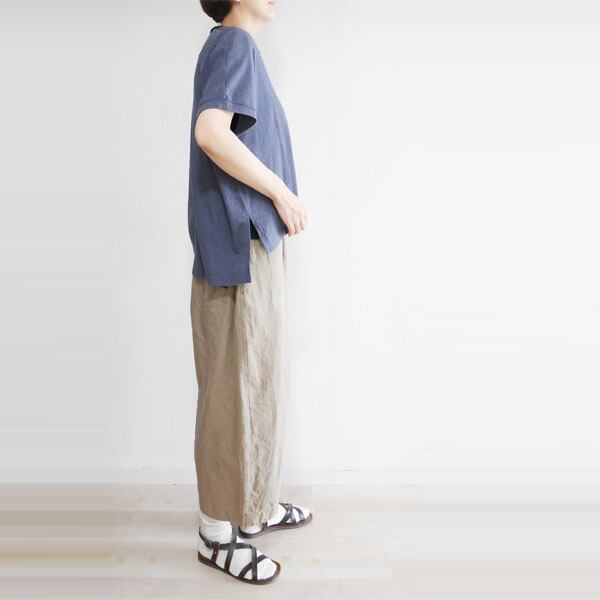 リネンの中でも品質がよく、衣料用途に最適とされるベルギーリネンとコットンを混紡させることで、ヨレやねじれを極力おさえてくれます。